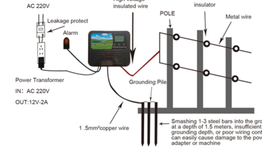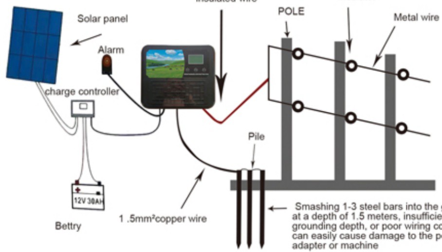 Pan fydd y pridd yn y safle gosod yn sych iawn neu'n cael ei ddiffeithdiro, nid yw'r sylfaen cystal i'r rheolydd ynni. Felly, mae'n anodd neu'n amhosibl ffurfio cylched allbwn foltedd uchel y rheolydd ynni pan fydd anifeiliaid yn ei gyffwrdd. Ar yr adeg hon, mae angen i ddefnyddwyr berfformio triniaeth sylfaen ar y naill law, a chysylltu'r wifren sylfaen yn uniongyrchol â'r cebl dargludol pen blaen ar y llaw arall. Fel hyn, pan fydd anifeiliaid yn dod i gysylltiad â'r cebl dargludol pen blaen, gellir sicrhau cylched dda a chyflawn, gan sicrhau bod anifeiliaid sy'n cyffwrdd â'r cebl dargludol yn cael yr effaith foltedd uchel mwyaf yn gyflym.